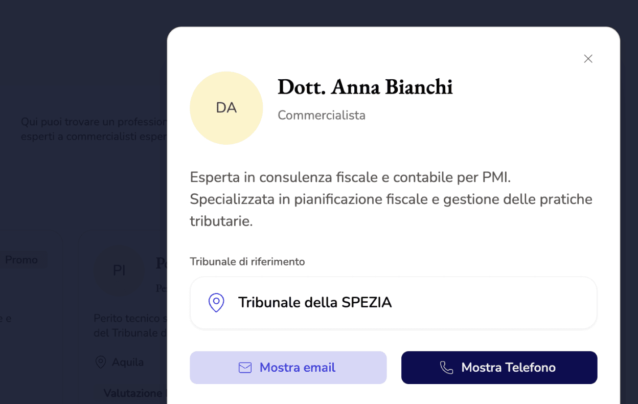 Puoi estendere la tua presenza professionale a livello nazionale, favorendo il contatto con curatori di eredità giacente operanti su tutto il territorio italiano